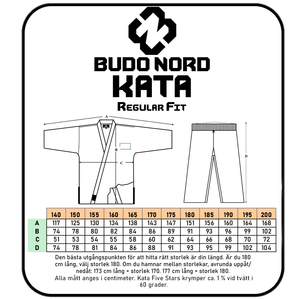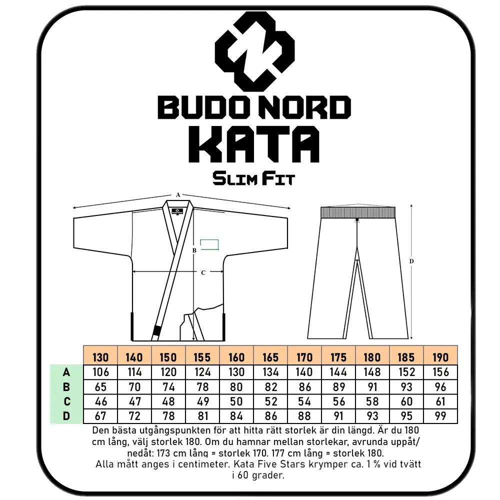 A top suit for discerning karate-ka. The fabric is a dense canvas fabric that gives the suit stability and shape and has high comfort. The fabric is really nice against the body, something you will appreciate if you wear the suit many hours a week. Compared to previous Kata suits, this one is slightly lighter and breathes better. The suit is made in two versions, Regular Fit and Slim Fit. Slim Fit is intended for those who have a slim body and / or are well trained without being muscular. Regular Fit is slightly wider in the cut (circumference of the body and hips).